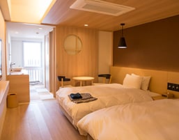 まるで金沢の別邸のような、限られた人のための特別な「寝室」。 「雨庵」の客室数は、決して多くはありません。それは、すべてのお客様にゆっくりと寛いでいただけるゆとりのある客室をご提供したいから。1階のラウンジ「ハレの間」がリビングだとすれば、客室はお客様のためだけのちょっと贅沢な寝室。 坪庭やテラスが設えられたこだわりのお部屋が、金沢の特別な夜を演出します。 スーペリアダブル(約20㎡)最大定員:2名 スーペリアテラスダブル(約20㎡)最大定員:2名 スーペリアツイン(約29㎡)最大定員:2名 スーペリアテラスツイン(約31㎡)最大定員:2名 プレミアツイン(約41㎡)最大定員:4名 プレミアテラスツイン(約41㎡)最大定員:4名 詳しくはこちら